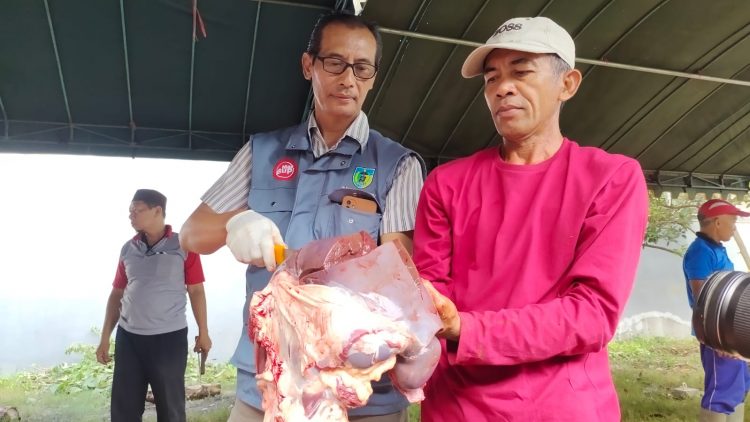 Bacaini.id, KEDIRI – Dinas Ketahanan Pangan dan Peternakan (DKPP) Kabupaten Kediri, melakukan sidak terhadap proses penyembelihan hewan kurban di Masjid Ash-Sholihin, Kecamatan Ngasem. Sidak dilakukan untuk memastikan daging kurban layak dan aman konsumsi