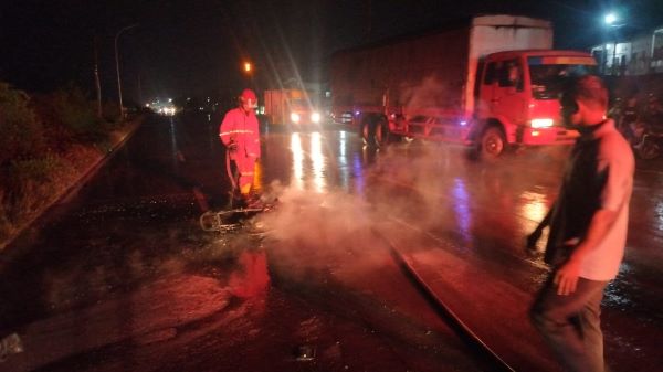 Saksi melihat sebelum terbakar, motor beserta pengendara sempat terjatuh di lokasi yang merupakan jalur arteri yang ramai.
