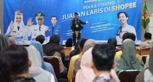 Bacaini.ID, KEDIRI – Wakil Wali Kota Kediri membuka workshop skill digital ‘Pola dan Strategi Jualan Laris di Shopee’. Acara berlangsung di Ruang Joyoboyo Balai Kota Kediri, Minggu (23/11/2025). Narasumber yang dihadirkan adalah Weliyan Tanoyo yang merupakan founder dari Digifolium. Serta narasumber lain dari perwakilan Bank Indonesia.