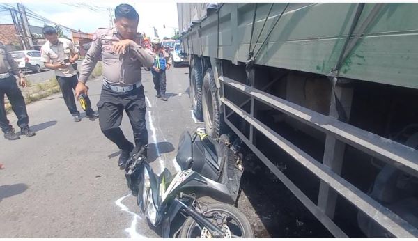 Motor oleng dan menyenggol badan mobil Livina dan terpental ke sisi kiri jalan. Pada saat yang sama dari arah belakang melaju truk tronton yang dikemudikan Imam Rokib, 58, warga Pagu Kabupaten Kediri.
