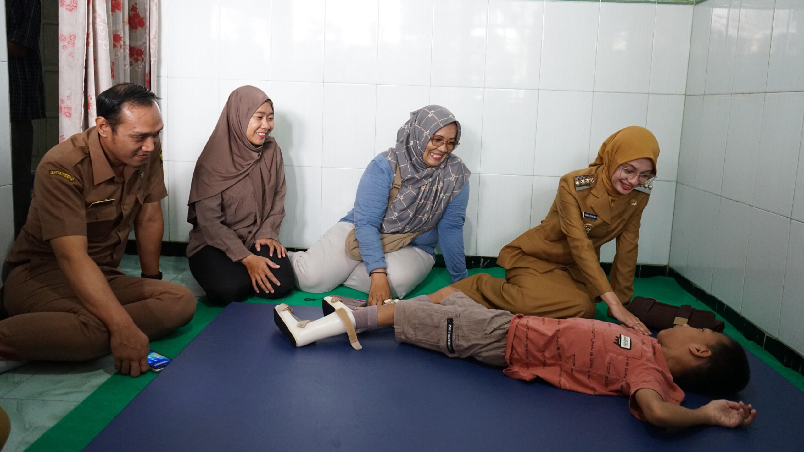 Rasa syukur diungkapkan Astri, ibu dari Mochamad Altof Sakhi. Bantuan yang diberikan membantu menunjang aktivitas anaknya yang menderita Celebral Palsy. Dimana anaknya yang berusia 12 tahun ini hanya dapat berbaring, berguling dan belum bisa duduk mandiri. Dari Dinas Sosial juga memberikan terapi kepada Mochamad Altof. “Seminggu sekali menjalani terapi. Alhamdulillah anaknya semangat untuk terapi,” ujarnya.