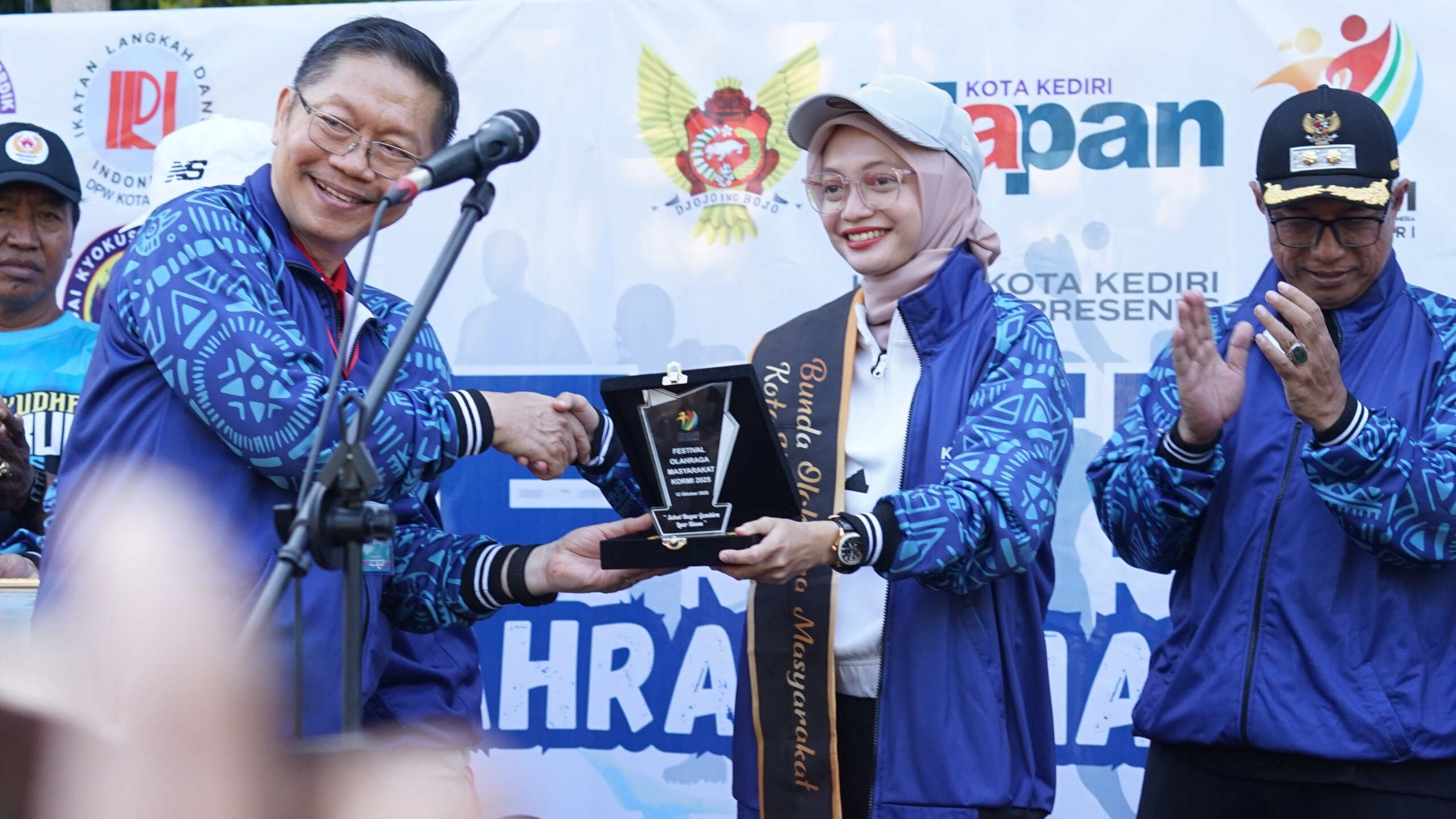 Bacaini.ID, KEDIRI – Wali Kota Kediri Vinanda Prameswati dianugerahi Bunda Olahraga Masyarakat Kota Kediri oleh Komite Olahraga Masyarakat Indonesia (KORMI). Penganugerahan dilakukan dalam acara Festival Olahraga Masyarakat Car Free Day, Minggu (12/10/2025) di Sepanjang Jalan Basuki Rahmat. Kegiatan ini diikuti 24 induk organisasi olahraga (Inorga). Mbak Wali juga mengikuti Senam Masal Flashmob Kediri Selalu Dihati.