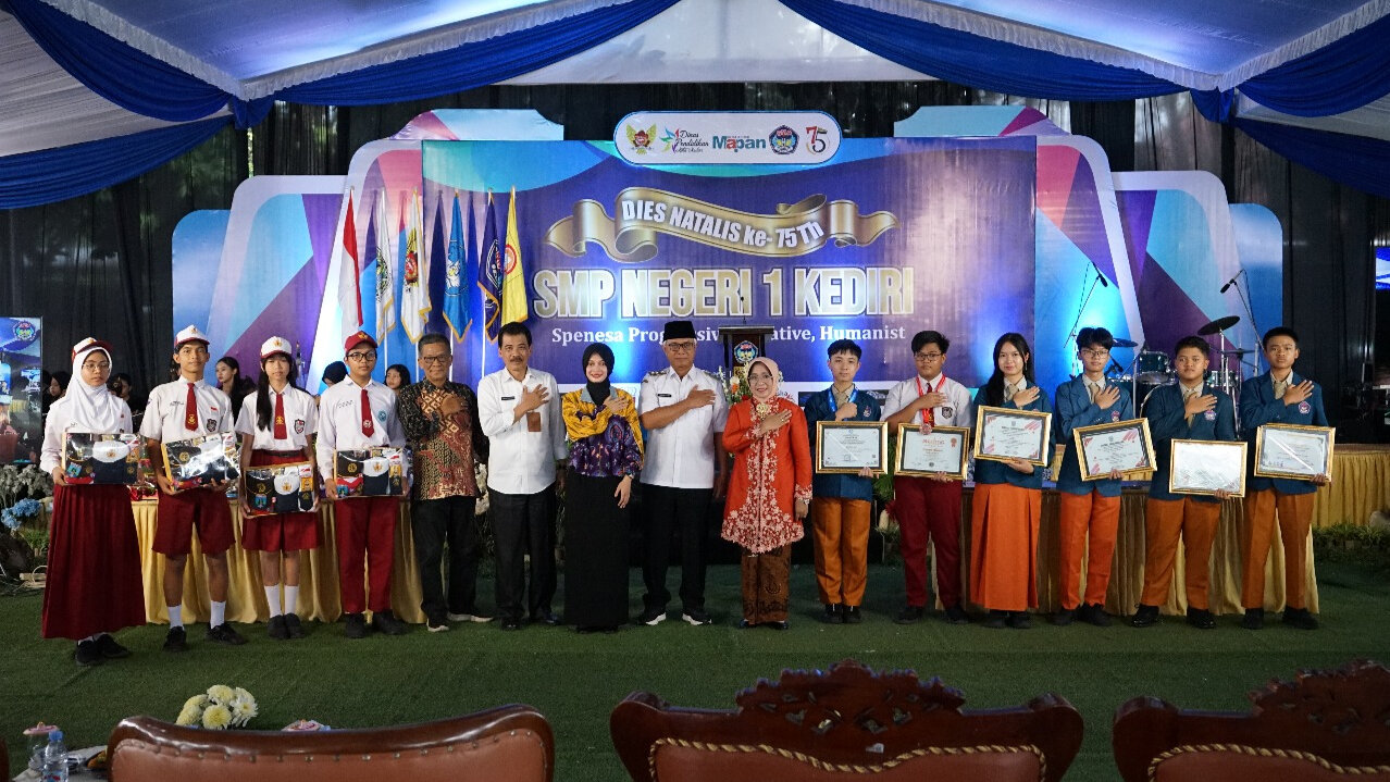 Bacaini.ID, KEDIRI – Wali Kota Kediri Vinanda Prameswati menghadiri puncak Dies Natalies Ke-75 SMP Negeri 1 Kediri, Rabu (05/11/2025). Perempuan yang akrab disapa Mbak Wali ini sekaligus bernostalgia mengenai masa-masa sekolahnya di SMP Negeri 1 Kediri.