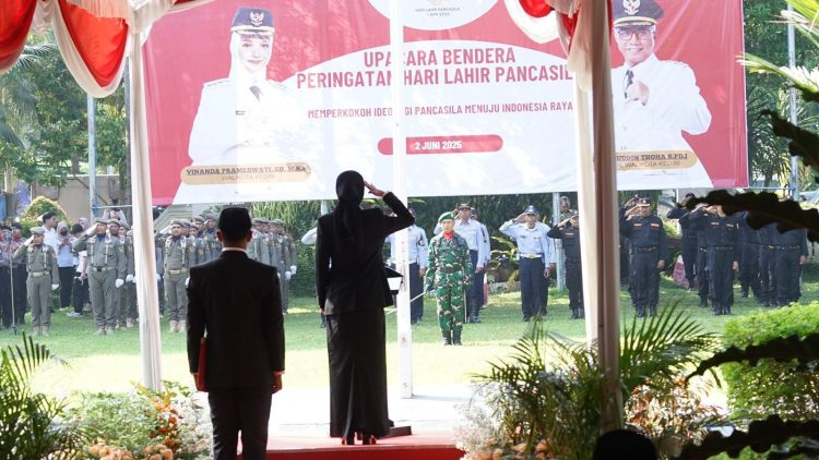 Bacaini.ID, KEDIRI – Wali Kota Kediri Vinanda Prameswati bertindak sebagai inspektur upacara pada Peringatan Hari Lahir Pancasila, di Halaman Balaikota Kediri, Senin (2/6/2025). Tema peringatan Hari Lahir Pancasila tahun 2025 ini adalah Memperkokoh Ideologi Pancasila, Menuju Indonesia Raya.