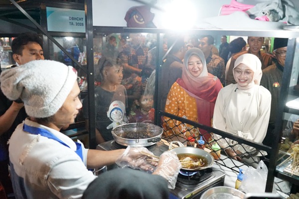 Tak hanya melaunching, Mbak Wali juga meninjau satu per satu pedagang di sana. Mbak Wali juga membeli kuliner yang tersedia lalu menikmatinya ditemani alunan musik.