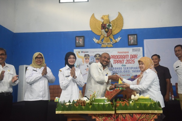 “Alhamdulillah kita bisa menyelesaikan Program DAK TPPKT dan penyerahan sertifikat hasil konsolidasi tanah. Hari ini diserahkan sekitar 44 SHM untuk masyarakat dan 12 sertifikat PSU yang nantinya jalan itu bisa digunakan jalan umum,” ujarnya.