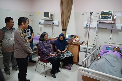 Bacaini.id, KEDIRI – Pj Wali Kota Kediri Zanariah menjenguk petugas pemilu yang tengah dirawat di Rumah Sakit Bhayangkara Kediri, Jumat (16/2). Hal tersebut merupakan bentuk perhatian dan dukungan moral sekaligus untuk mengecek kondisi Heri Krismanto (45) yang dirawat di RS Bhayangkara Kediri. Heri warga Kelurahan Ringinanom ini merupakan PKD (Pengawas Kelurahan/Desa) Pemilu, yang mengeluh anggota tubuh sebelah kanan lemas saat melakukan pengawasan di TPS Kelurahan Pakelan.