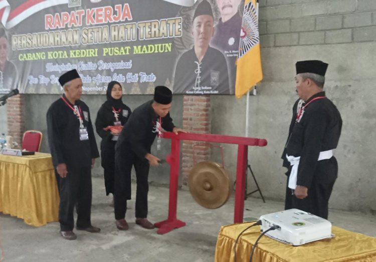 Bacaini.id, KEDIRI – Rapat Kerja (Raker )digelar Persaudaraan Setia Hati Terate (PSHT) Cabang Kota Kediri Pusat Madiun, Raker ini mengusung tema meningkatkan kualitas Berorganisasi dan tetap berpedoman pada ajaran setia Terate, Minggu (13/11) di Padepokan PSHT Kota Kediri.