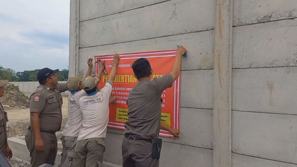 Penyegelan pembangunan pabrik tas koper dan plastik lantaran tidak mengantongi ijin Persetujuan Bangunan Gedung (PBG) dari dinas terkait.