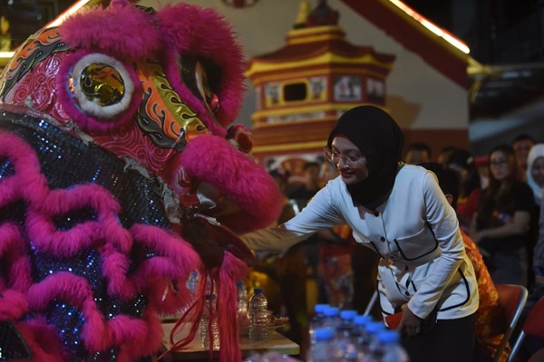 Pada kesempatan tersebut, Mbak Wali bersama rombongan turut menyaksikan pertunjukan barongsai yang semakin menyemarakkan suasana. Masyarakat tampak memadati area klenteng untuk menikmati rangkaian acara tersebut.