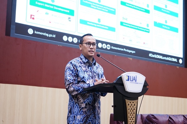 Direktur Pengembangan Pasar dan Informasi Ekspor Kementerian Perdagangan, Bayu Wicaksono Putro, S.T.,M.A., selaku keynote speaker menyampaikan bahwa inklusi digital merupakan pendorong ketahanan ekonomi. Hal menyebabkan adanya tantangan perdagangan global sehingga pasar domestic harus dilindingi untuk mendorong produk lokal mampu menembus pasar dunia.