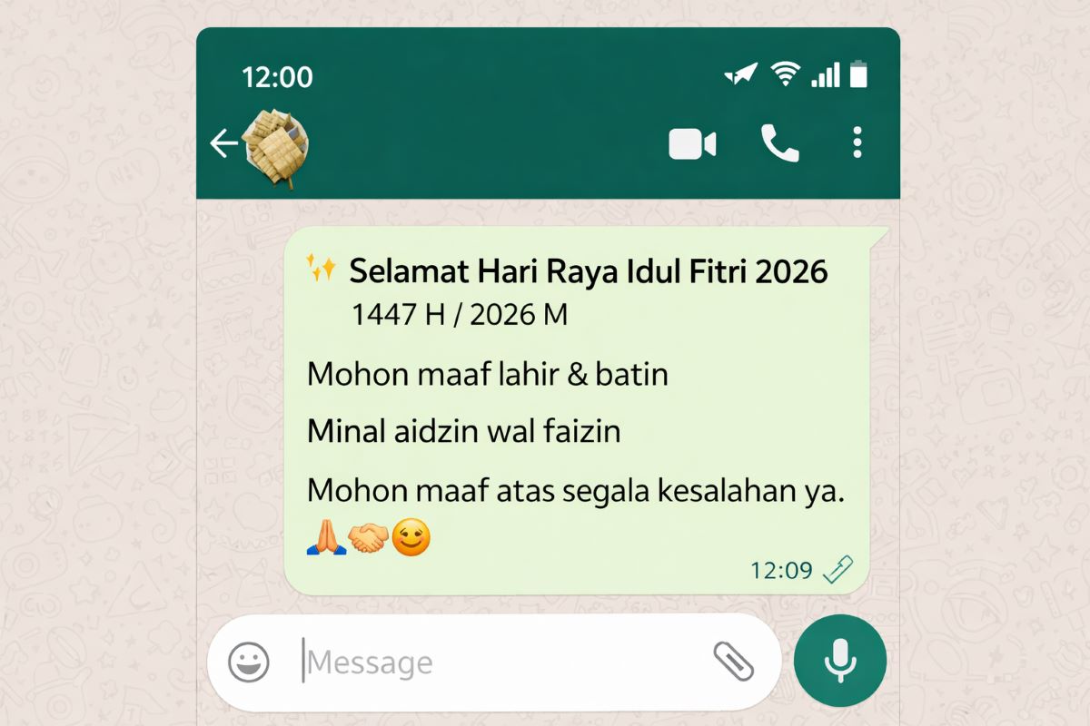 Agar tak bingung merangkai kata, berikut beberapa contoh ucapan Idulfitri 2026 yang bisa digunakan untuk broadcast WhatsApp, mulai dari gaya santai hingga formal. Tinggal copy paste (copas)!