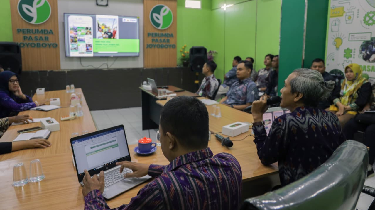 Bacaini.ID, KEDIRI – Citpakan wisata belanja yang nyaman serta ramah anak, Pemerintah Kota Kediri melalui Perumda Pasar Joyoboyo berkomitmen untuk mewujudkan pasar ngangeni di Kota Kediri. Hal itu disampaikan Djauhari Luthfi, Direktur Perumda Pasar Joyoboyo saat menghadiri kegiatan Monev dan Bimtek Media Sosial bersama Dinas Kominfo Kota Kediri, Kamis (9/10). Kegiatan yang berlangsung di ruang rapat Perumda Pasar Joyoboyo itu dihadiri perwakilan pengurus seluruh pasar tradisional yang ada di Kota Kediri.